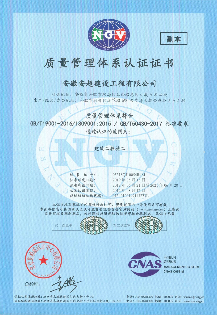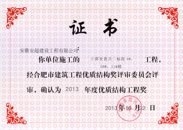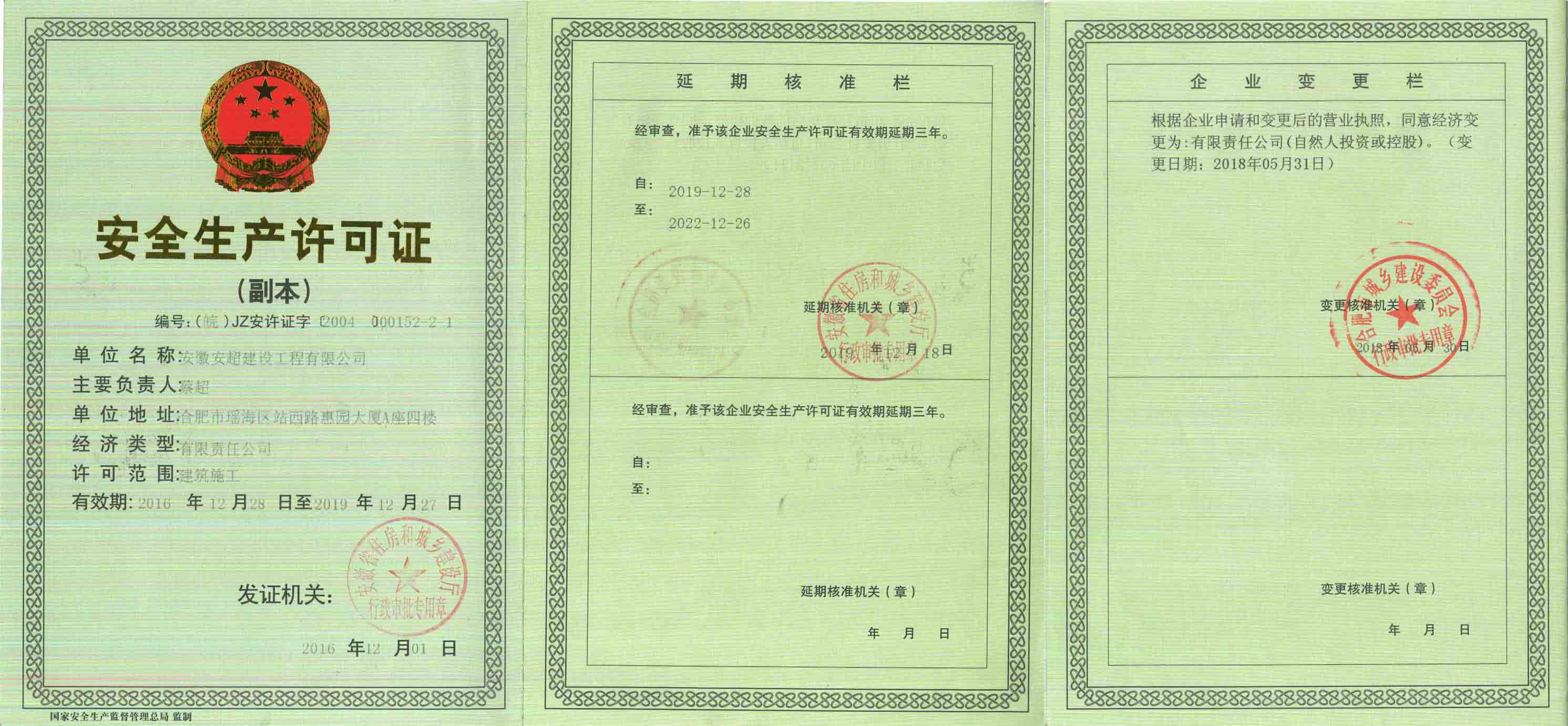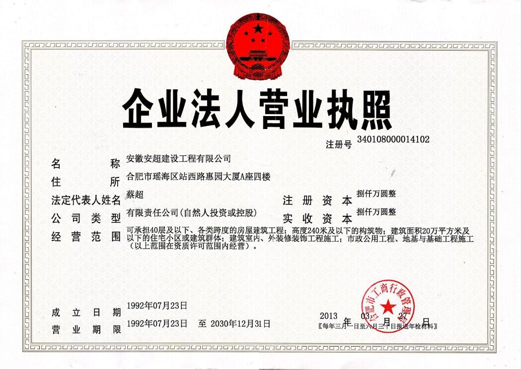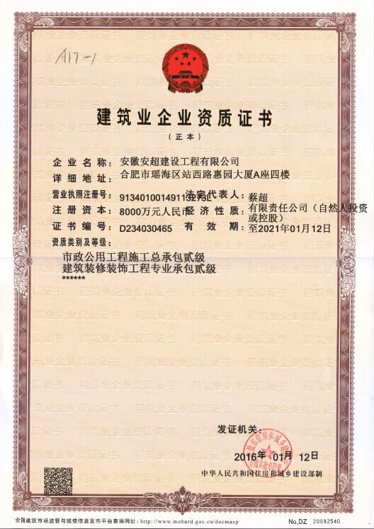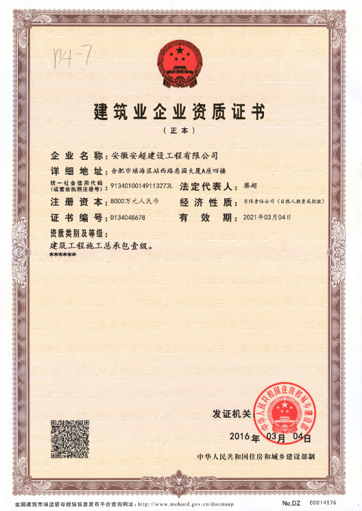 安超建設(shè)工程有限公司簡(jiǎn)介   安徽安超建設(shè)工程有限公司創(chuàng)建于上世紀(jì)90年代,公司自創(chuàng)辦至今,在省、市各級(jí)主管部門(mén)領(lǐng)導(dǎo)的關(guān)心和支持下,通過(guò)企業(yè)自身的不懈努力和頑強(qiáng)拼搏,獲得快速成長(zhǎng),現(xiàn)已發(fā)展為擁有注冊(cè)資本8000萬(wàn)元,固定資產(chǎn)近億元, 具備完成年產(chǎn)值40億施工能力的國(guó)家房屋建筑施工總承包一級(jí)企業(yè)。除房建主項(xiàng)資質(zhì)外,公司還具有市政公用工程施工總承包、建筑裝修裝飾工程專(zhuān)業(yè)承包等增項(xiàng)資質(zhì)。   公司始終堅(jiān)持走質(zhì)量興業(yè)之路,注重科技創(chuàng)新、強(qiáng)化現(xiàn)場(chǎng)管理,施工隊(duì)伍及專(zhuān)業(yè)技術(shù)力量不斷壯大,各類(lèi)大、中型施工機(jī)械和質(zhì)量檢測(cè)設(shè)備齊全,企業(yè)組織機(jī)構(gòu)和管理體系建設(shè)完善。多年來(lái),...