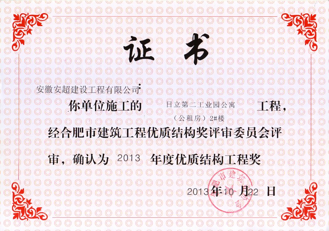 2013年度日立第二工業(yè)園公寓市優(yōu)質(zhì)結(jié)構(gòu)工程獎